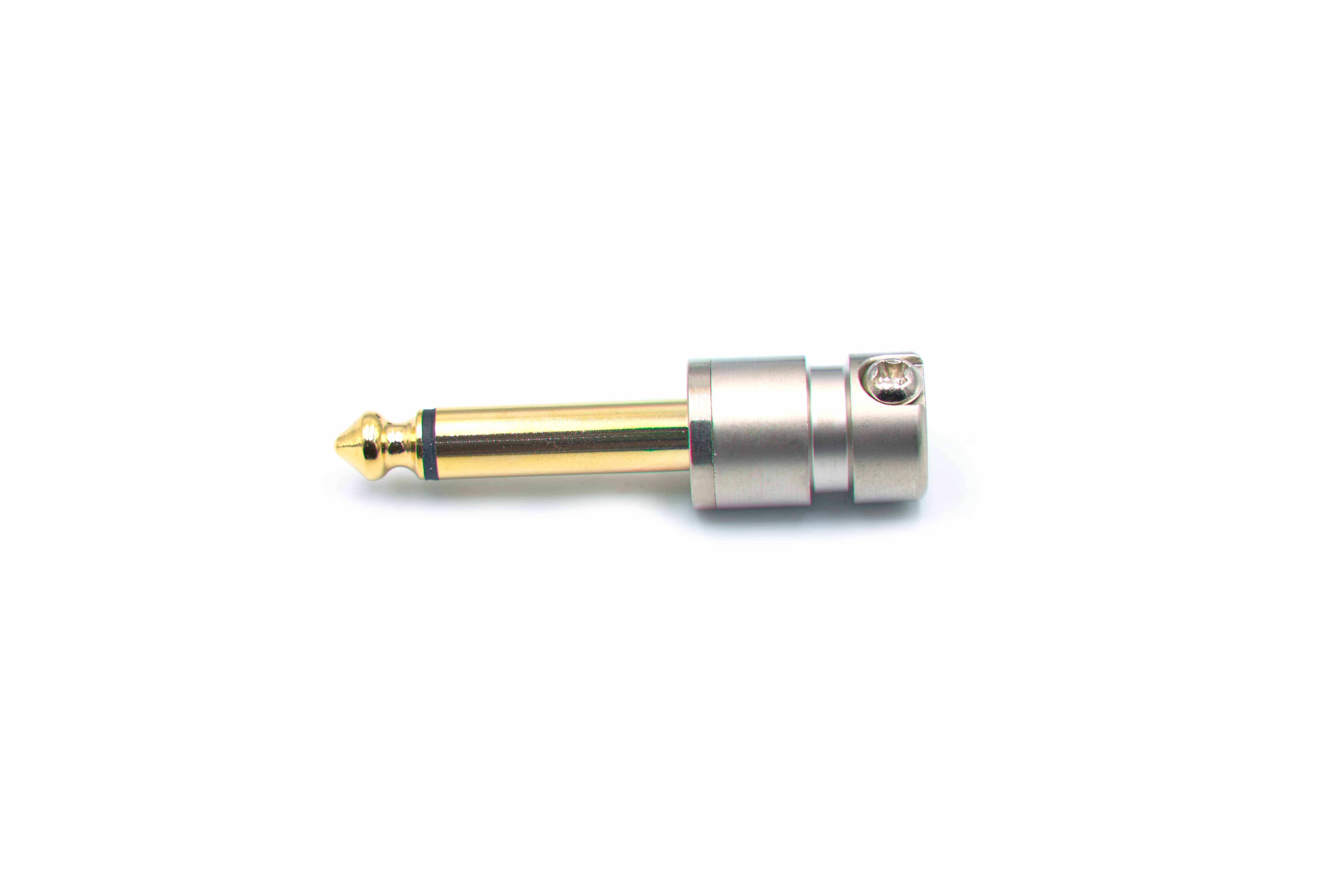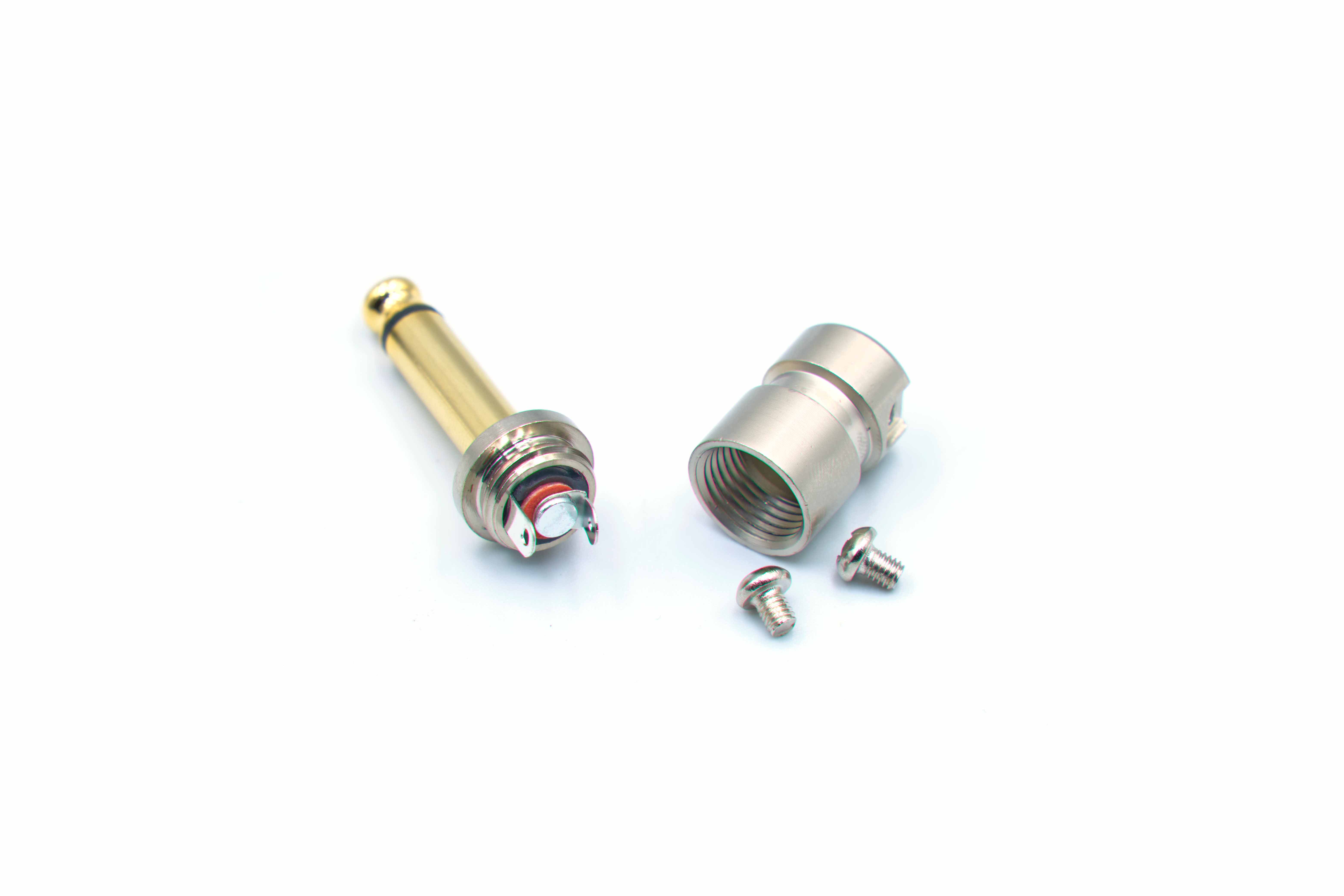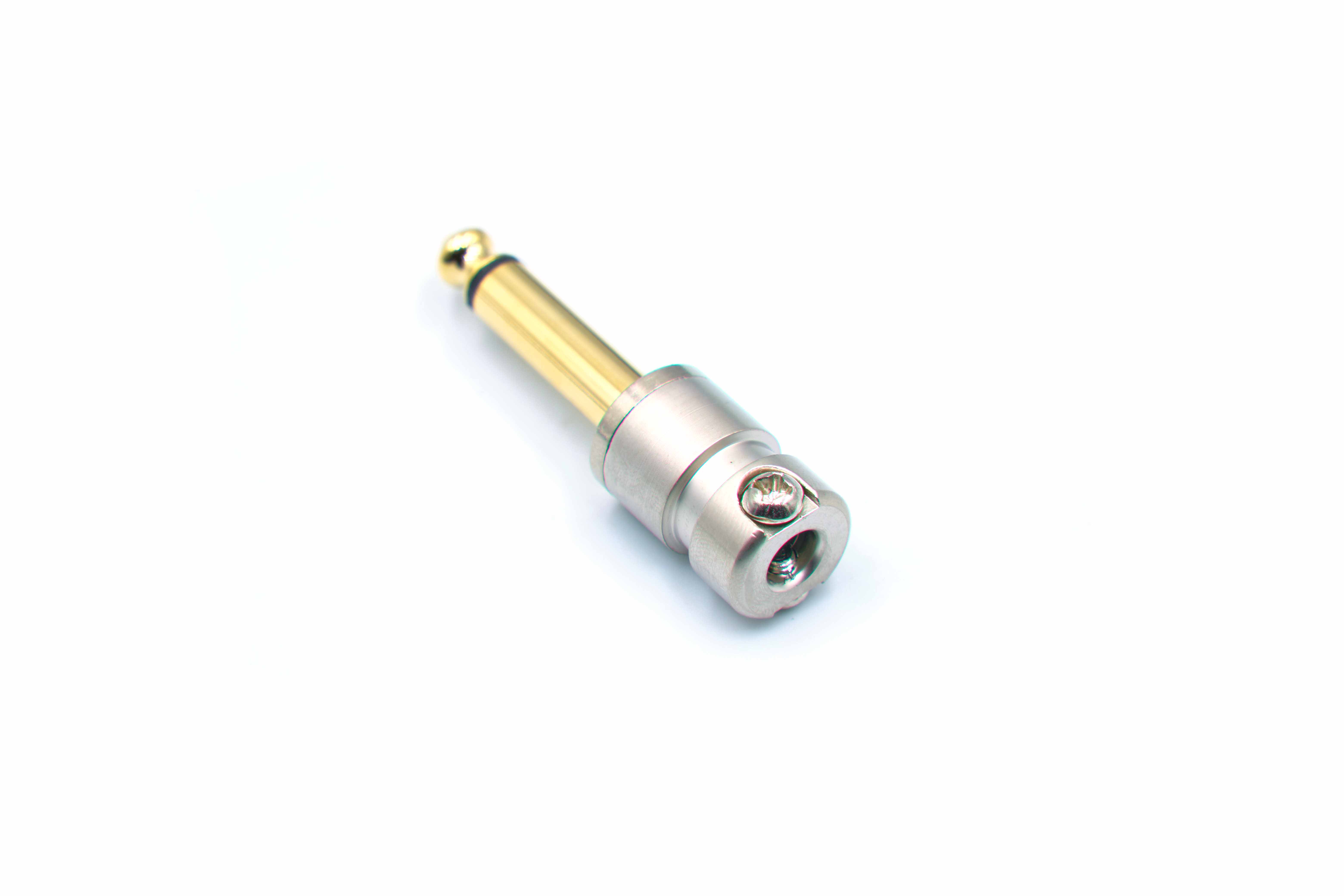 The gold-tipped contact ensures reliable, corrosion-resistant signal transfer, while the machined nickel body is solid enough to handle repeated plugging and unplugging. The screw-lock barrel threads on securely, keeping everything in place once soldered.