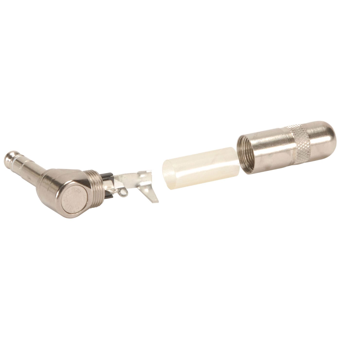 Switchcraft's 1/4" Stereo 3 Conductor Right Angle Cable Mount Plug with Solder Contacts is designed for OEMs and users of commercial phone plugs. The plugs offer large terminals for easy wiring, and only three pieces to assemble - handle, insulator and finger/housing assembly and rugged reliability for stable, long-term, trouble-free operation.