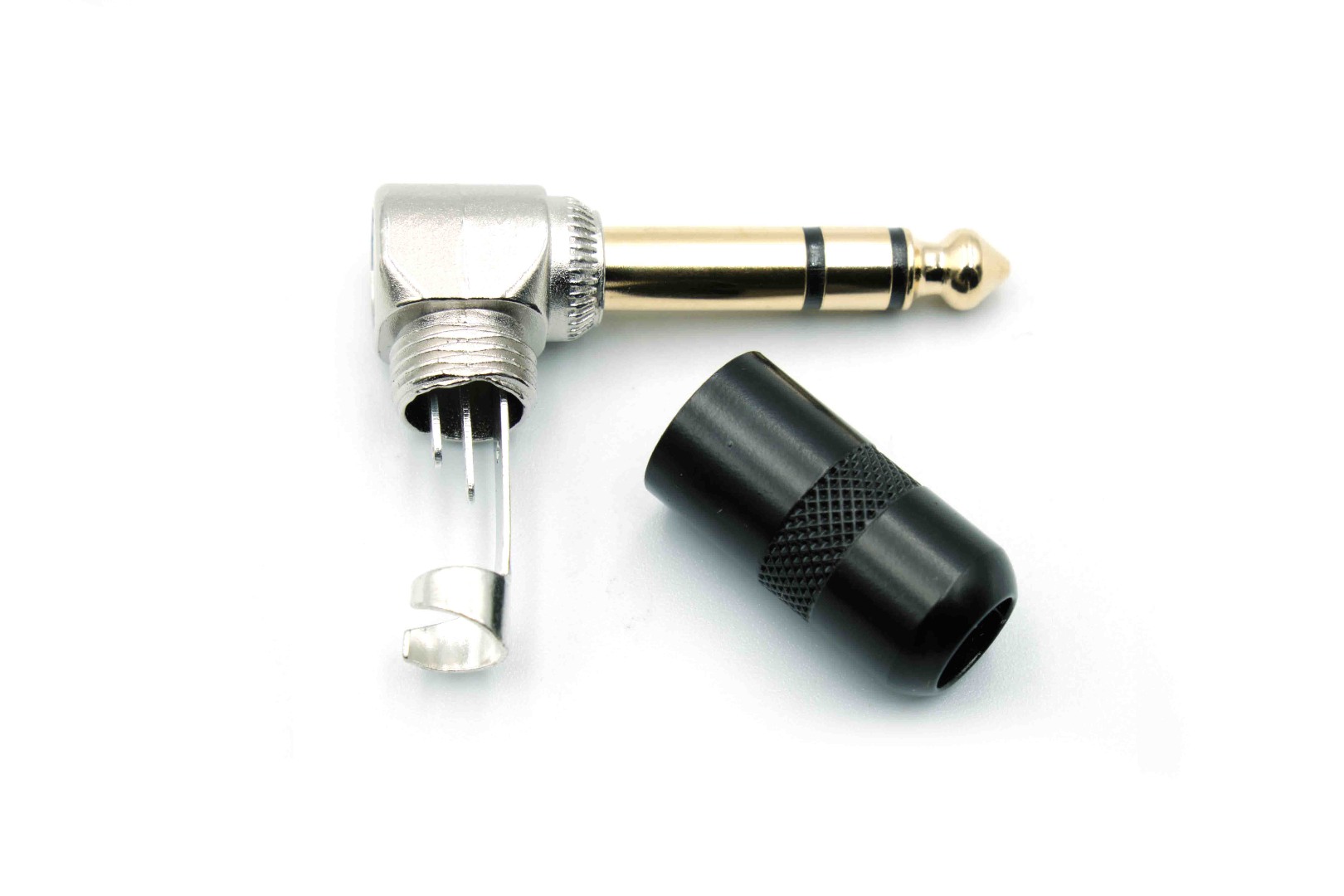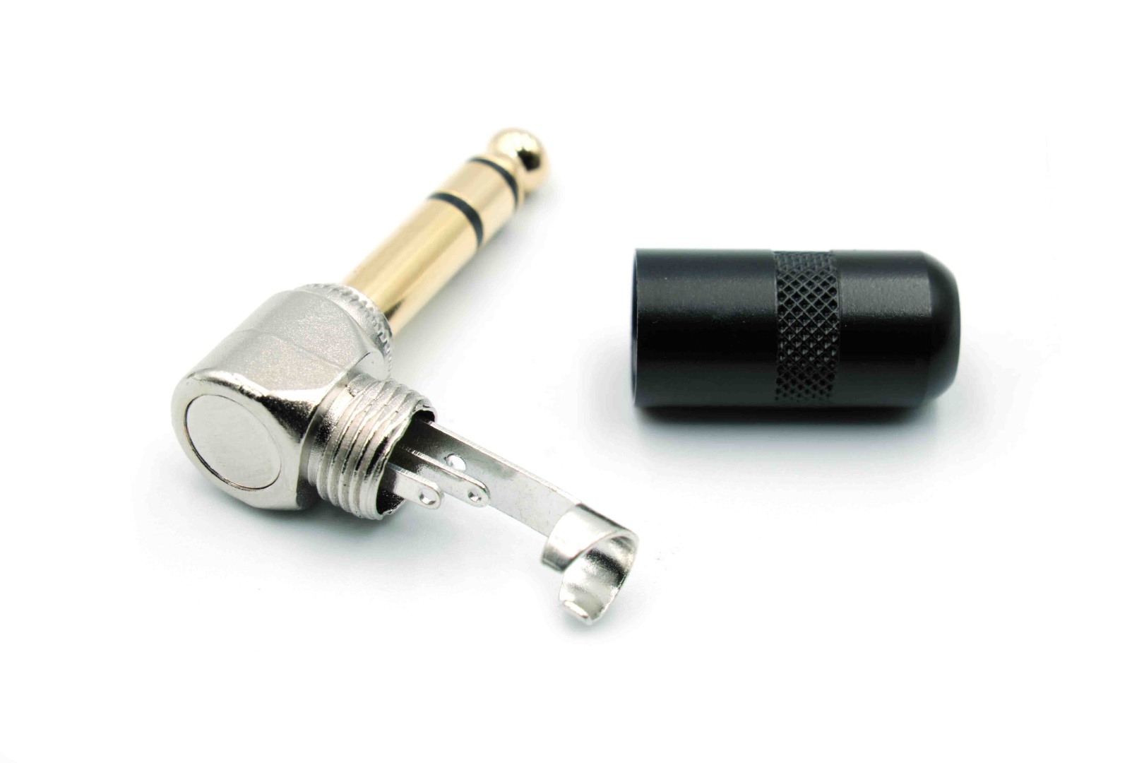 TRS Right Angled Short Barrel Form Factor Stereo Plugs 1/4 Gold tip Black